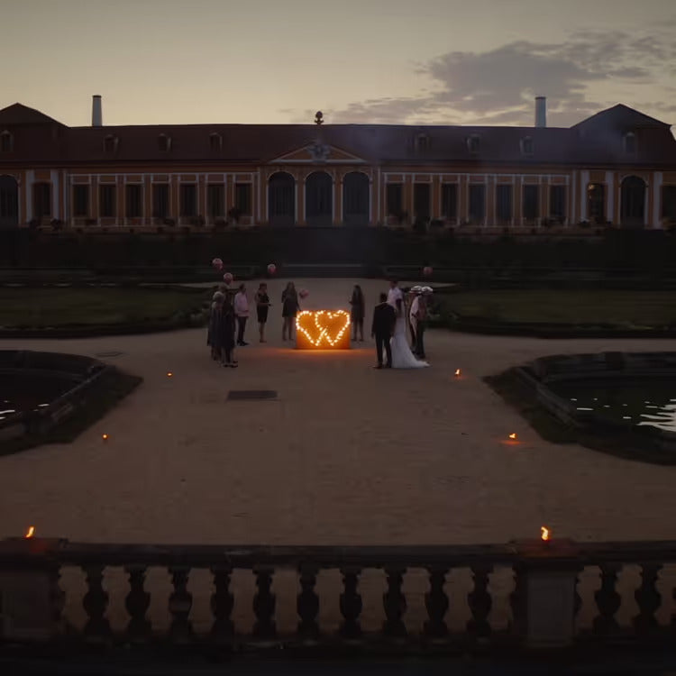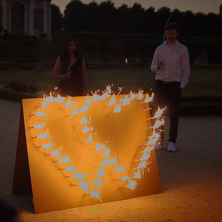 Das brennende Doppelherz ist eines der beliebtesten Lichterbilder. Zwei ineinander verschlungene Herzen sind ein perfektes Symbol der Liebe. Besonders gern werden die brennenden Herzen als Überraschung für eine Hochzeit verwendet. Am Abend wenn es bereits dunkel ist zündet man vor dem Brautpaar die Herzen an und schafft somit einen unvergesslichen Moment für das Ehepaar und natürlich auch für die Hochzeitsgesellschaft.