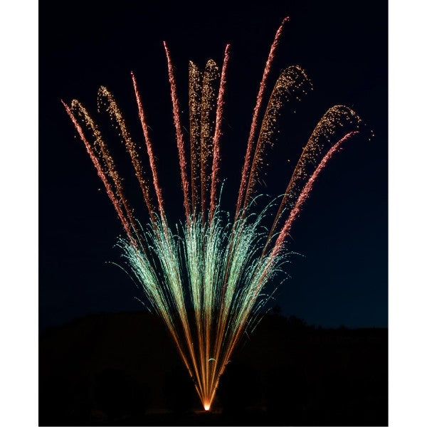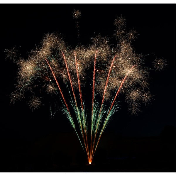 Variantenreiches Verbundfeuerwerk mit 4 Batterien und 124 Schuss.