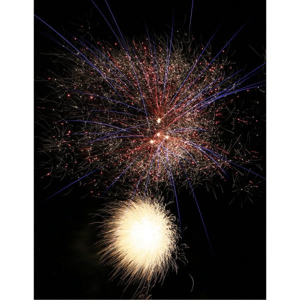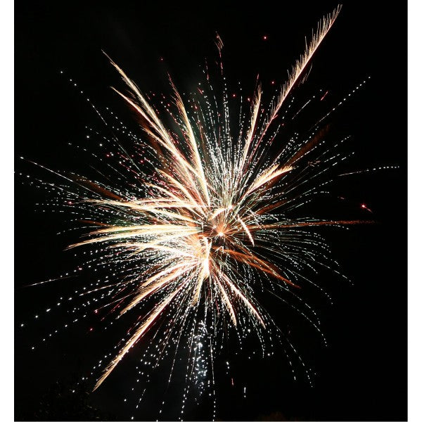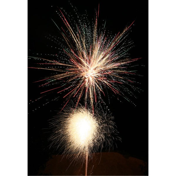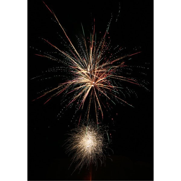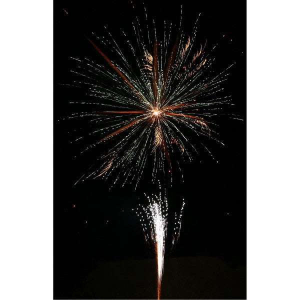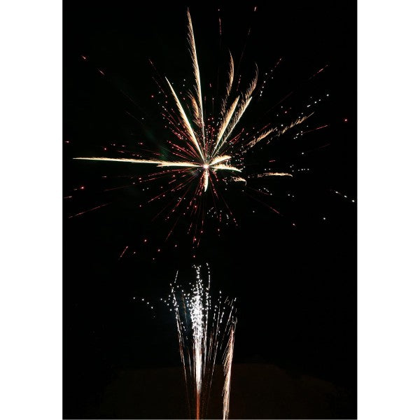 Phase 3: Rasant abgefeuerte 40 Schuss, die mit lauter Brandung zum Himmel steigen und sich anschließend lautstark in einem glitzernden bunten Sternenmeer in 8 Finalsalven brechen.